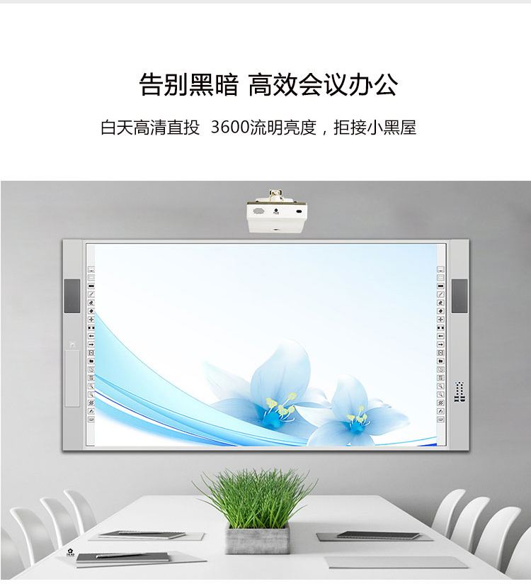 采用DLP激光光源,短距離可投射大尺寸,畫(huà)面清晰,色彩真實(shí),給學(xué)生更豐富的色彩展示,更清晰的畫(huà)面