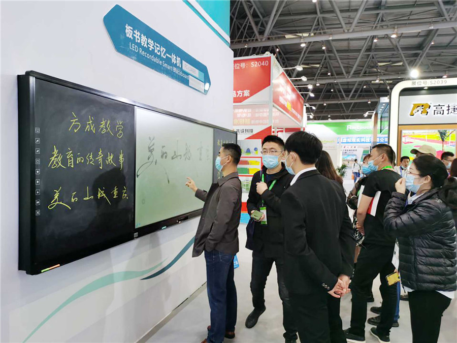 2020年10月23日,由中國(guó)教育裝備行業(yè)協(xié)會(huì)主辦、重慶市教育委員會(huì)和重慶市商務(wù)委員會(huì)承辦的第78屆中國(guó)教育裝備展示會(huì)在美麗山城重慶盛大開幕。方成板書教學(xué)記憶一體機(jī)“渝”期而至,在重慶國(guó)際博覽中心S2-046全新展示。本屆展會(huì),教育部關(guān)心下一代工作委員會(huì)常務(wù)副主任、中國(guó)教育裝備行業(yè)協(xié)會(huì)王富會(huì)長(zhǎng)親臨現(xiàn)場(chǎng)指導(dǎo)。